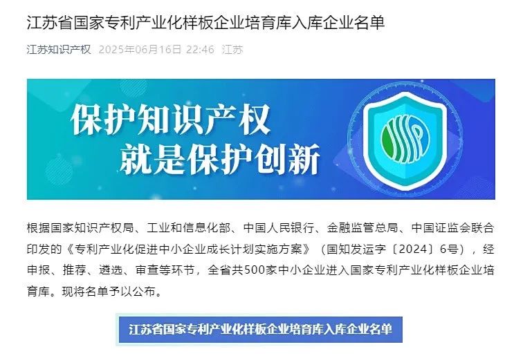 江蘇省知識(shí)產(chǎn)權(quán)局公布