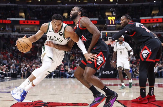 籃球直播吧12月1日訊 NBA常規(guī)賽,主場作戰(zhàn)的芝加哥公牛以120-113加時(shí)擊敗密爾沃基雄鹿。武切維奇29分10籃板6助攻,阿德托昆博26分14籃板5助攻。